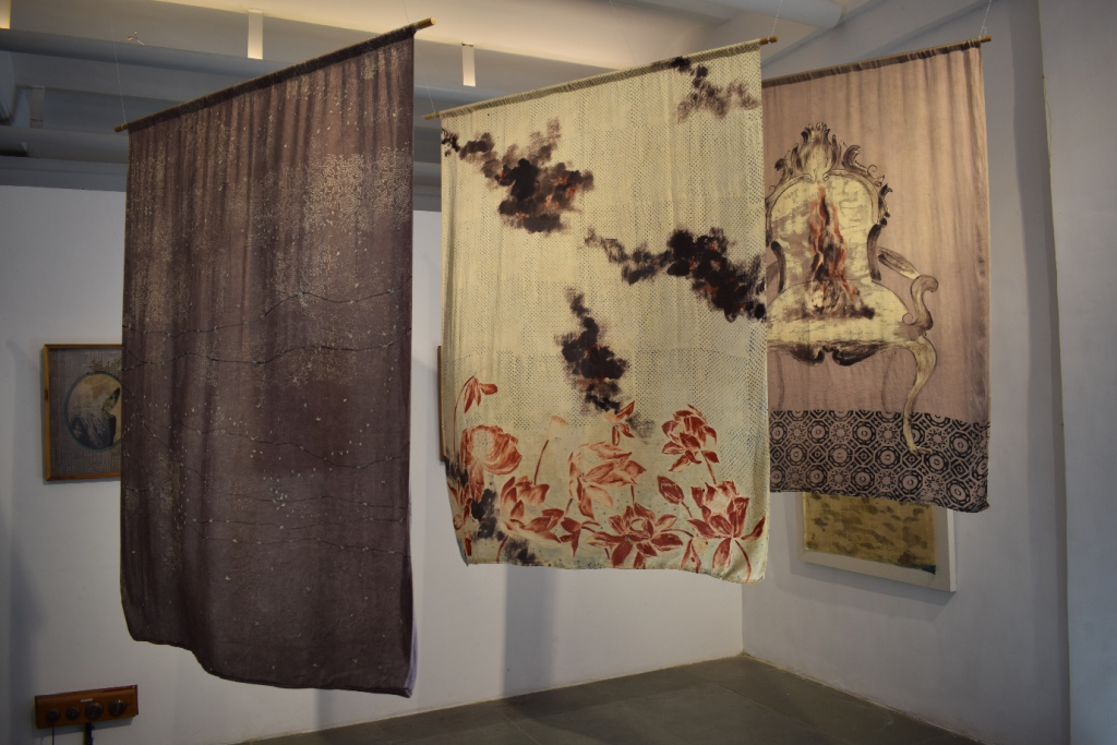 Her practice is characterized by a continuous exploration of diverse materials. She finds excitement in experimenting with different surfaces, such as handwoven kala cotton fabric, Kota Doria, and modal silk, which she often prepares herself. Beyond traditional methods, she integrates digital prints and other materials to create complex, layered compositions. This combination of traditional crafts and contemporary techniques allows her to push the boundaries of printmaking and textile arts.